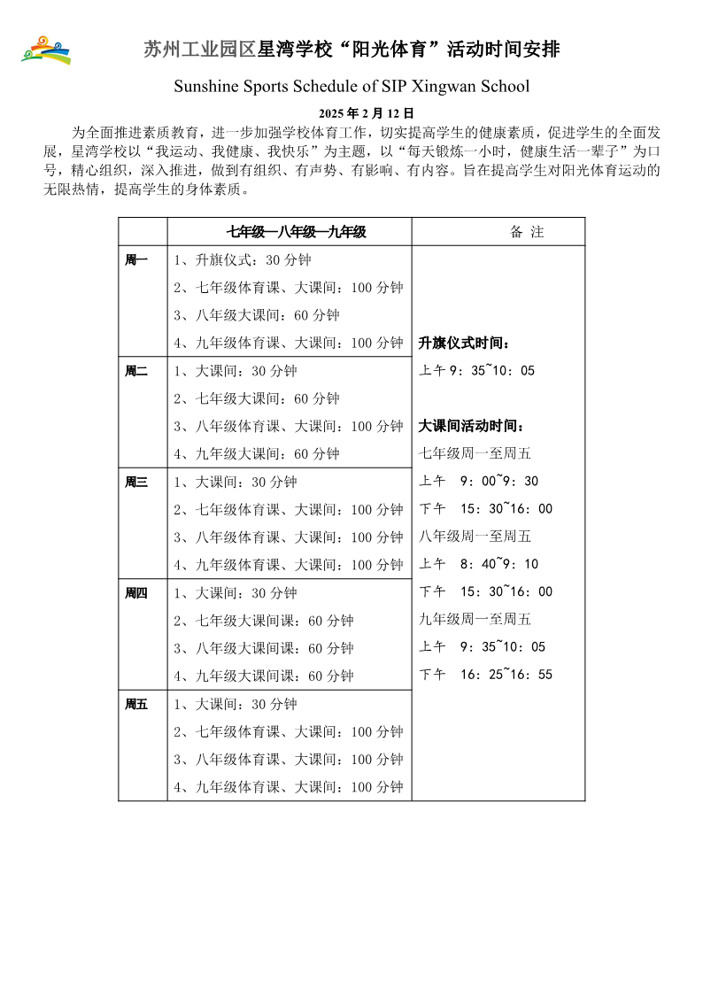 2025年2月星湾学校 7-9年级每天一小时